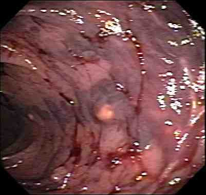 On examination patient was pale , had tachycardia & a skin lesion over his right knee ( cutaneous nevus - hemangioma ) . He was referred for Suspicion of cancer of Rectum on Cect abdomen & need for biospy for confirmation .